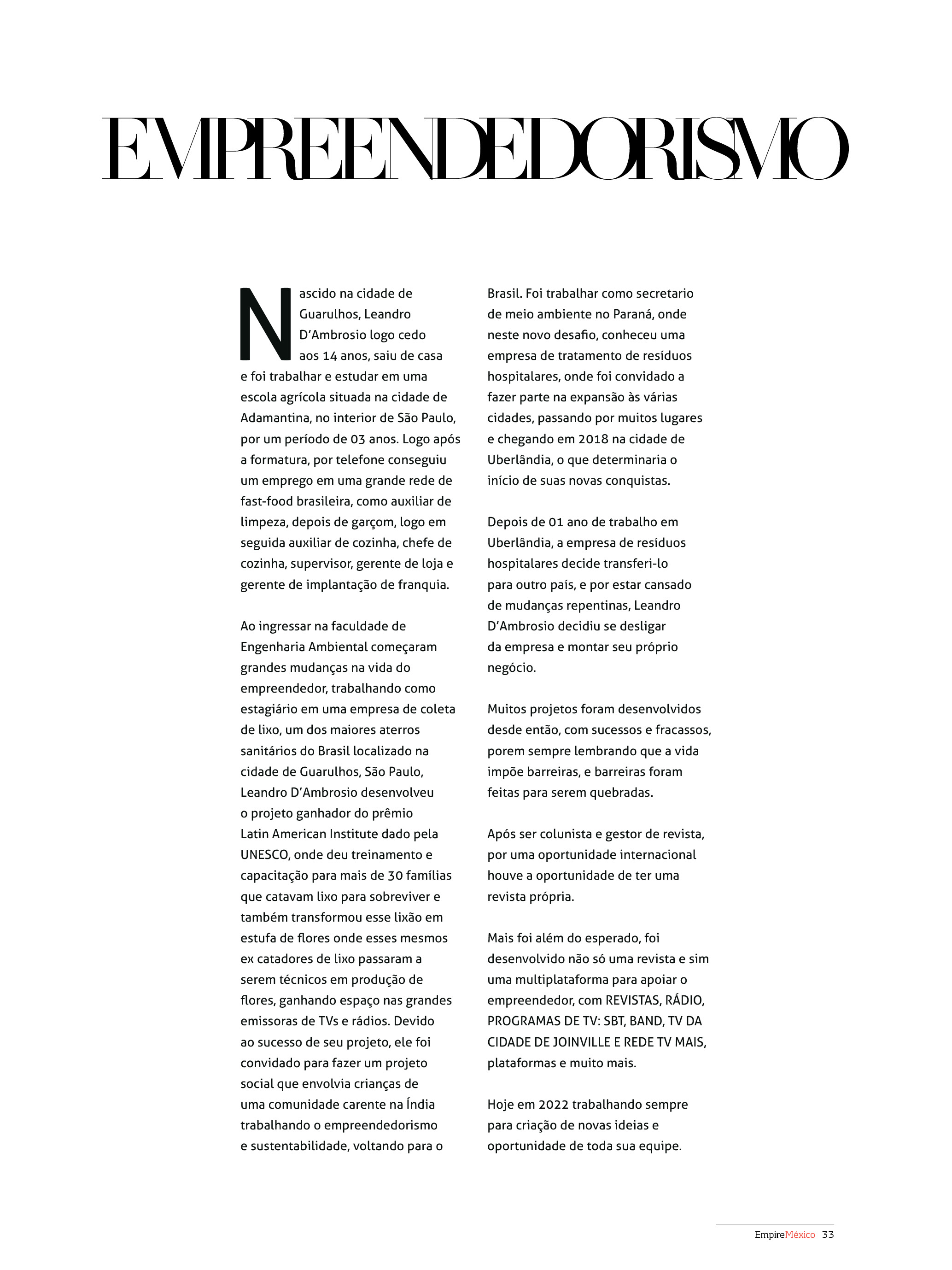 CEO Grupo Empire Leandro D’Ambrosio / CEO Grupo Empire México Aline D’Martin / Diretor Financeiro Leonardo Martins / Jornalista Responsável Liliane Costa 15.449-MG / Designer Gráfico/Diagramação Mizael Lopes.